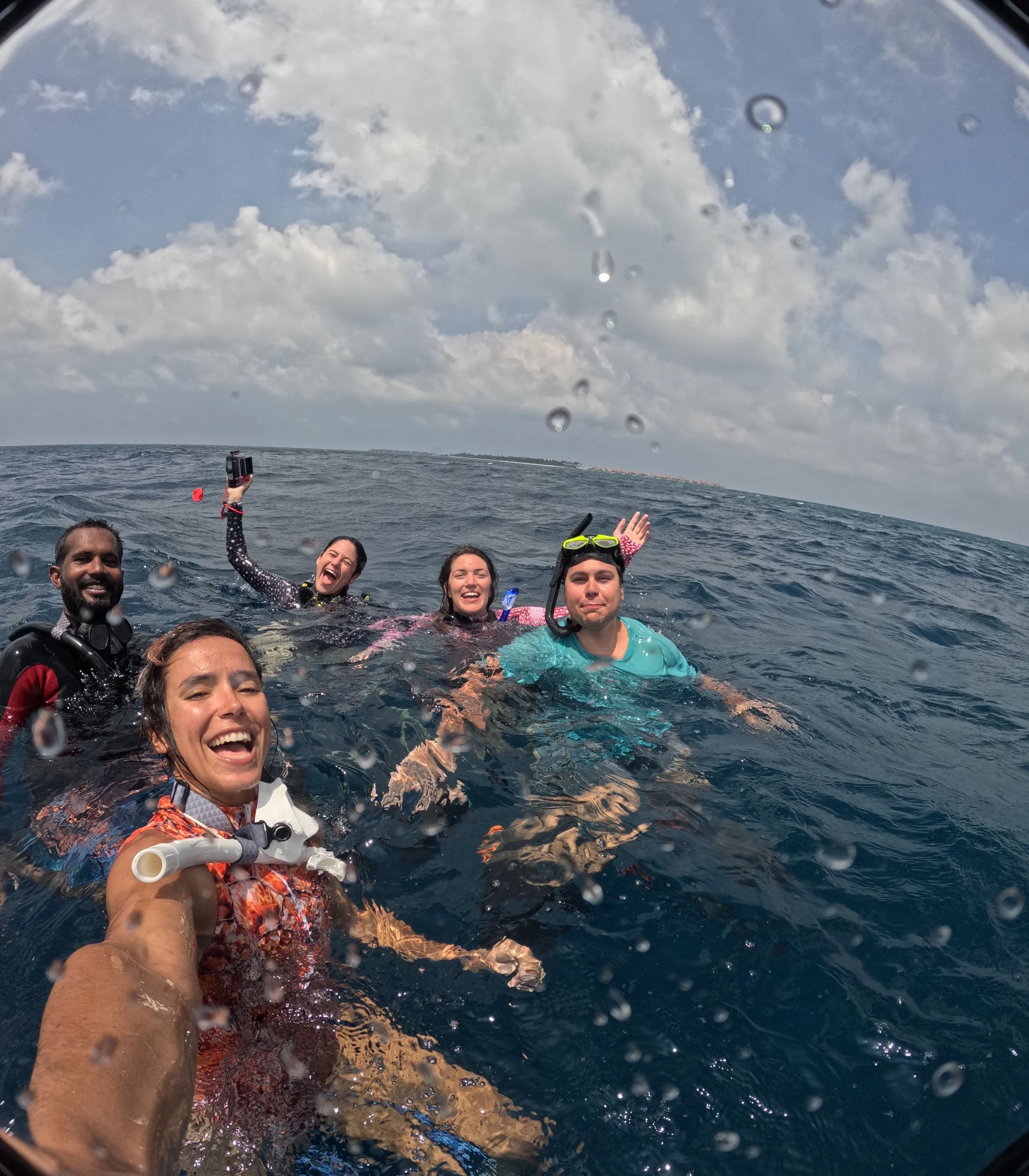 Esta es, sin duda, una de las excursiones más emocionantes del viaje. Desde Fulidhoo, nos lanzamos a la aventura en busca del impresionante tiburón ballena, el pez más grande del mundo. Puede medir más de 10 metros, pero no te asustes: es un gigante completamente pacífico que se alimenta solo de plancton. ¡Y nadar a su lado es una pasada!